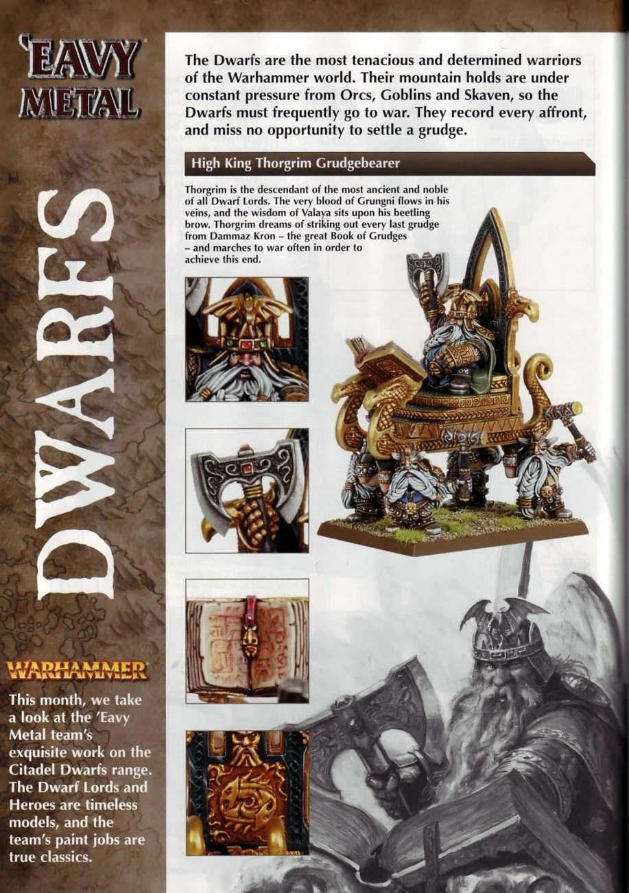 We skip another few issues and return to the Eavy Metal pages in issued 138 and the Studio Dwarf army
